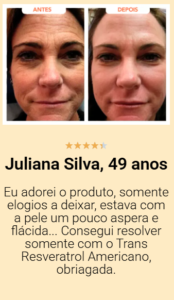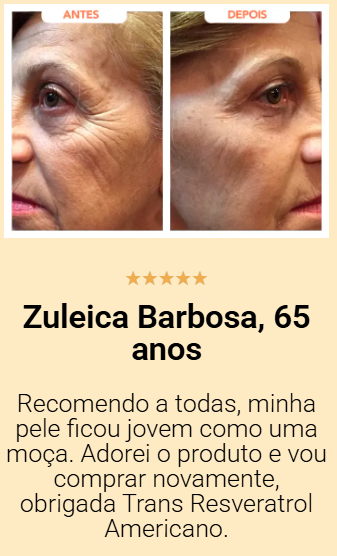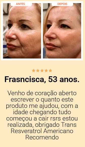 O tratamento Trans Resveratrol Americano + Vitamina K2 é aprovado pela ANVISA e possui uma fórmula exclusiva para eliminar as rugas, marcas de expressão, pés de galinhas e bigode chinês de forma natural. Várias marcas no mercado brasileiro estão se passando por TRANS RESVERATROL AMERICANO, só que não fornecem resultados esperados para os clientes, então saiba que se você usar um produto realmente americano suas rugas e marcas de expressão literalmente desapareceram em no máximo 90 dias!